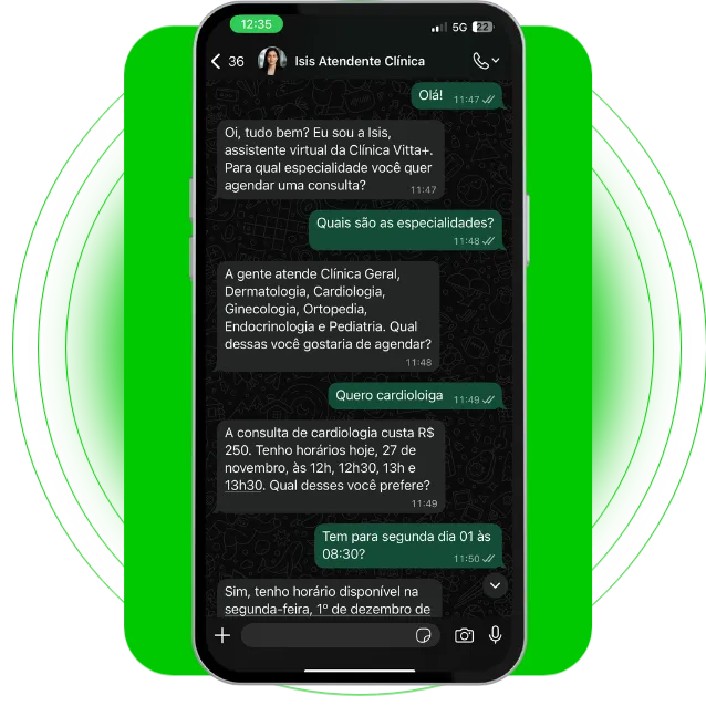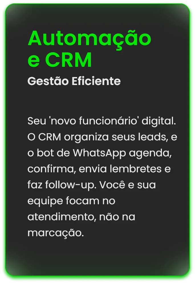 paciente com Inteligência Artificial no WhatsApp, e o integramos ao seu CRM e agenda. Você só abre o